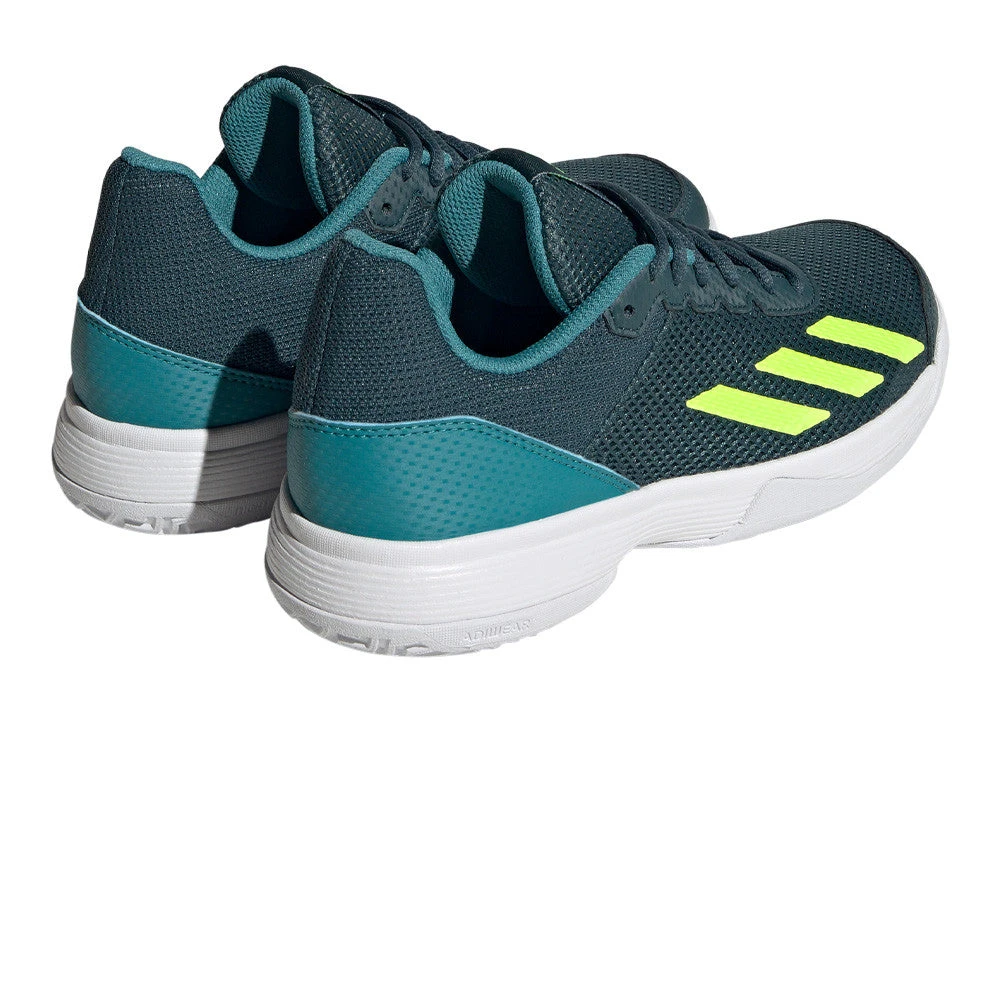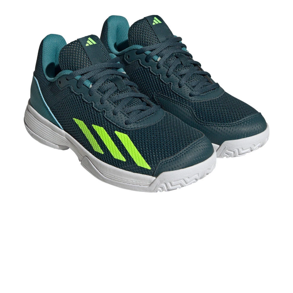Keep them quick across the court. Lightweight and breathable, the mesh upper on these kids’ adidas Courtflash shoes makes them perfect for high-speed tennis. Underneath, a grippy Adiwear outsole delivers lightning-fast acceleration across a range of surfaces. On top, abrasion-resistant Adituff bolsters their defences against foot drag so they can slide with confidence. Made with a series of recycled materials, this upper features at least 50% recycled content. This product represents just one of our solutions to help end plastic waste.
